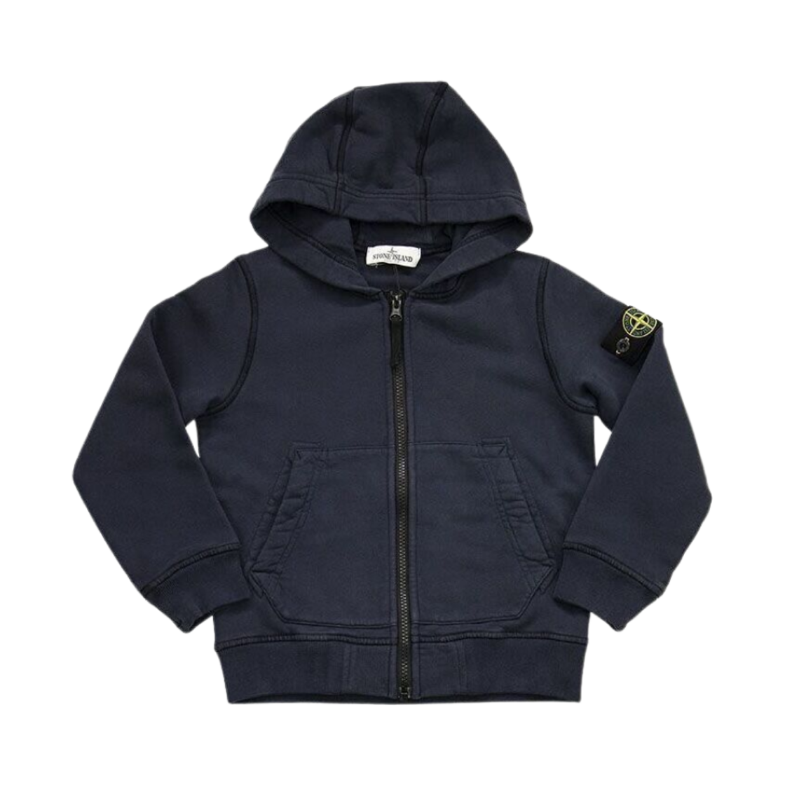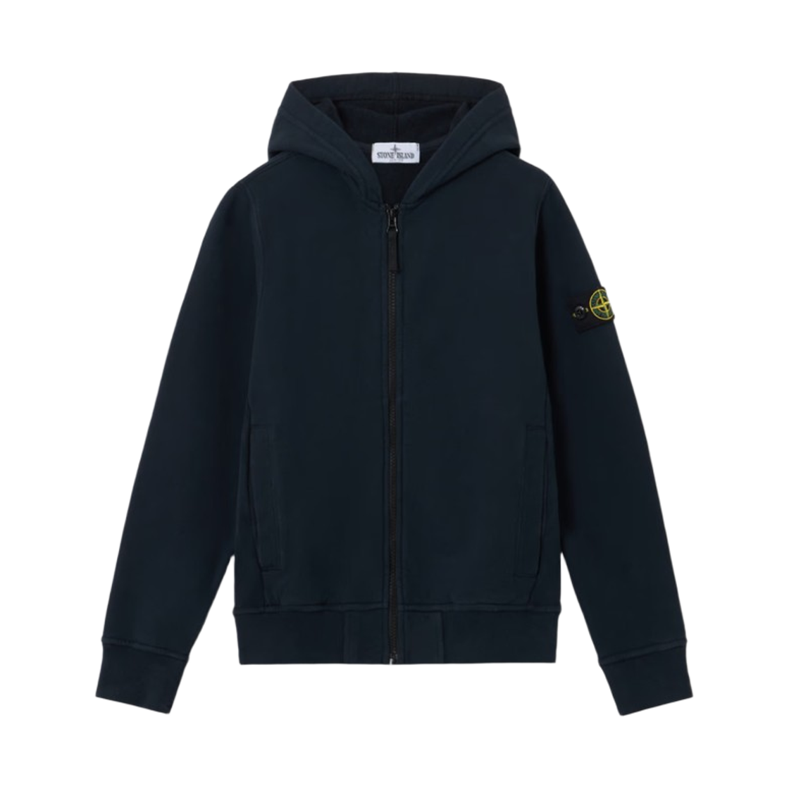 (키즈) 스톤 아일랜드 60740 코튼 플리스 풀 지퍼 후드 스웨트셔츠 네이비 블루 - 21FW