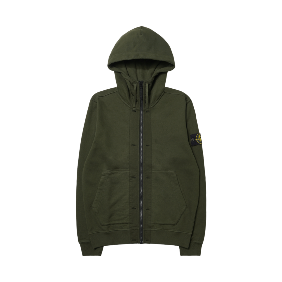 스톤 아일랜드 6100042 오가닉 코튼 플리스 후드 스웨트셔츠 드로우스트링 후드 앤 지퍼 밀리터리 그린 - 25SS