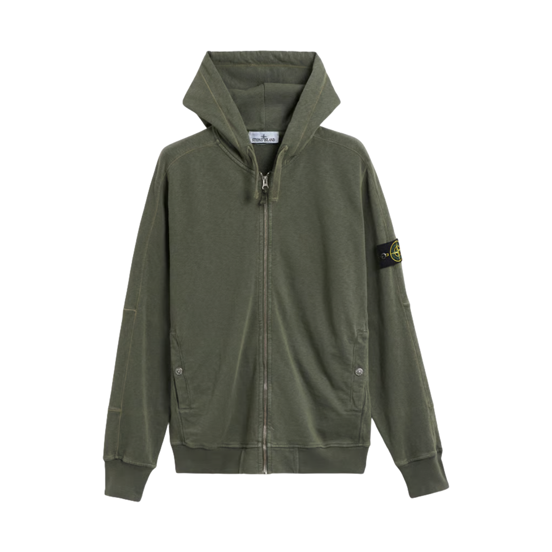 스톤 아일랜드 63160 올드 트리트먼트 후드 풀 집 스웨트셔츠 머스크 그린 - 24SS