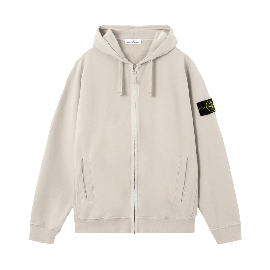 스톤 아일랜드 6100067 브러쉬드 오가닉 코튼 플리스 레귤러 핏 후드 집업 스웨트셔츠 포켓 펄 그레이 - 25FW