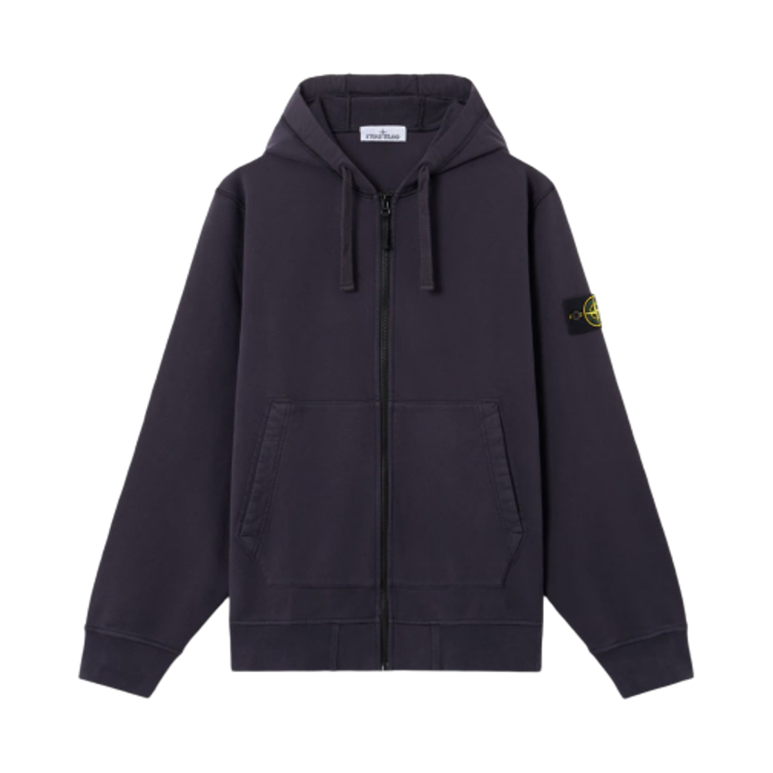 스톤 아일랜드 61620 브러쉬드 코튼 플리스 가먼트 다이드 풀 지퍼 후드 스웨트셔츠 블랙 - 23FW