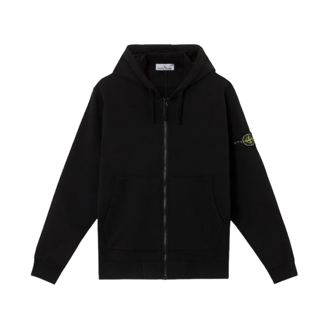 스톤 아일랜드 6100042 오가닉 코튼 플리스 후드 스웨트셔츠 드로우스트링 후드 앤 지퍼 블랙 - 25SS