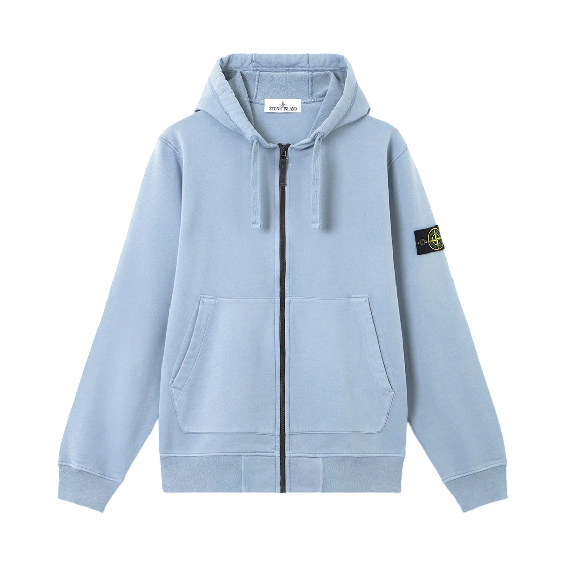 스톤 아일랜드 6100061 오가닉 코튼 플리스 레귤러핏 집업 후드 스웨트셔츠 포켓 아비오 블루 - 26SS