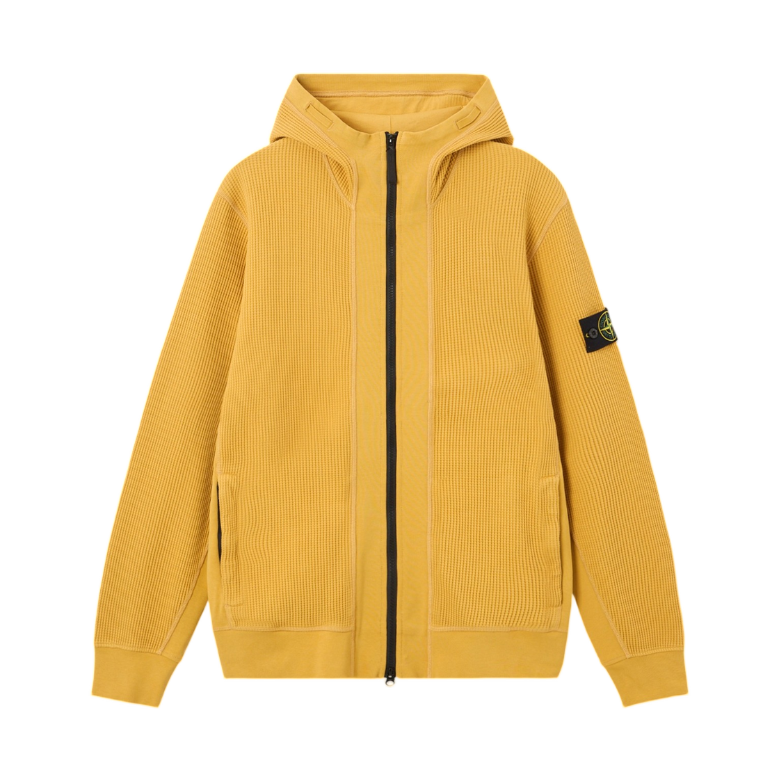 스톤 아일랜드 6100058 오가닉 코튼 와플 플리스 레귤러핏 집업 후드 스웨트셔츠 포켓 머스타드 - 26SS