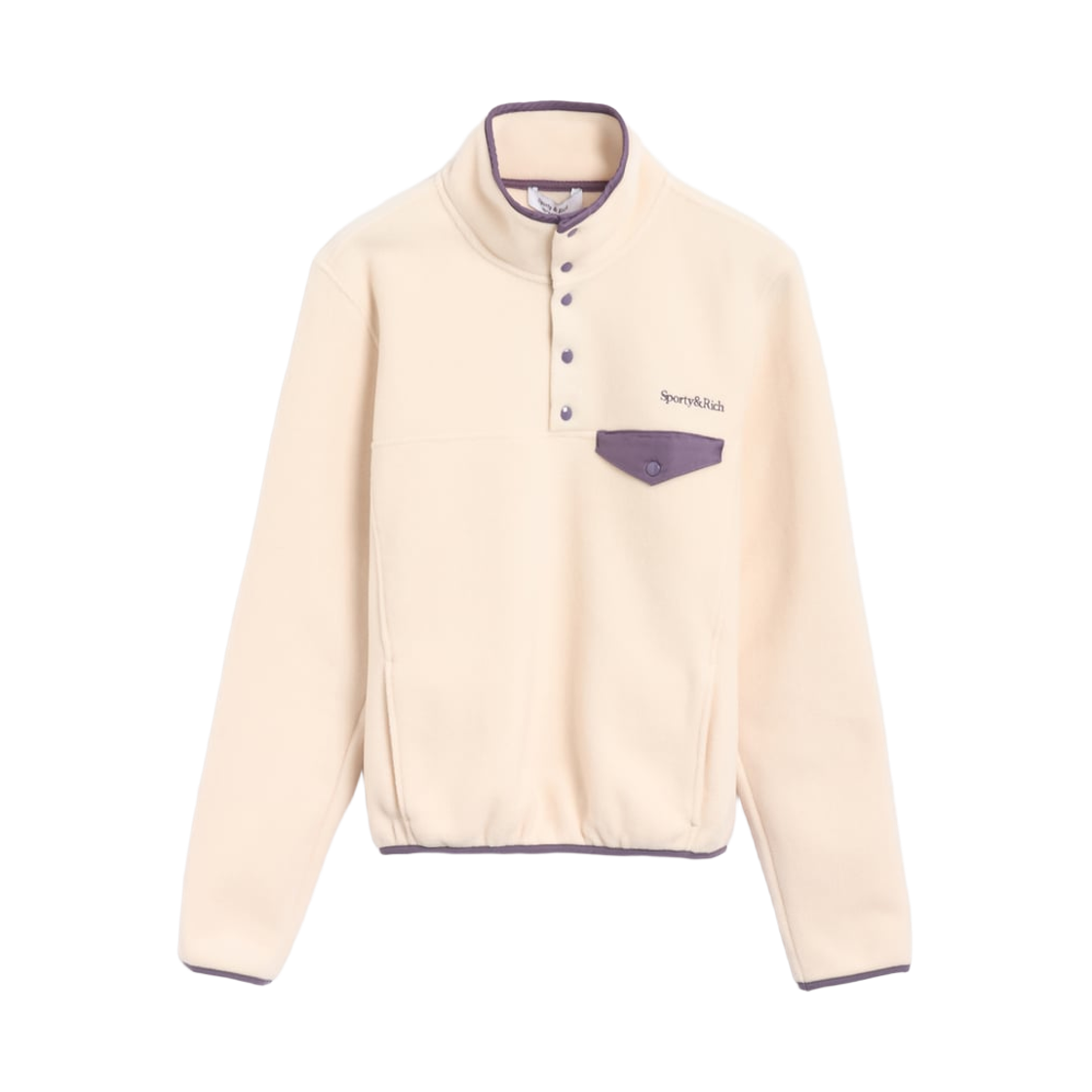 스포티 앤 리치 세리프 로고 폴라 하프 집 스웨트셔츠 크림