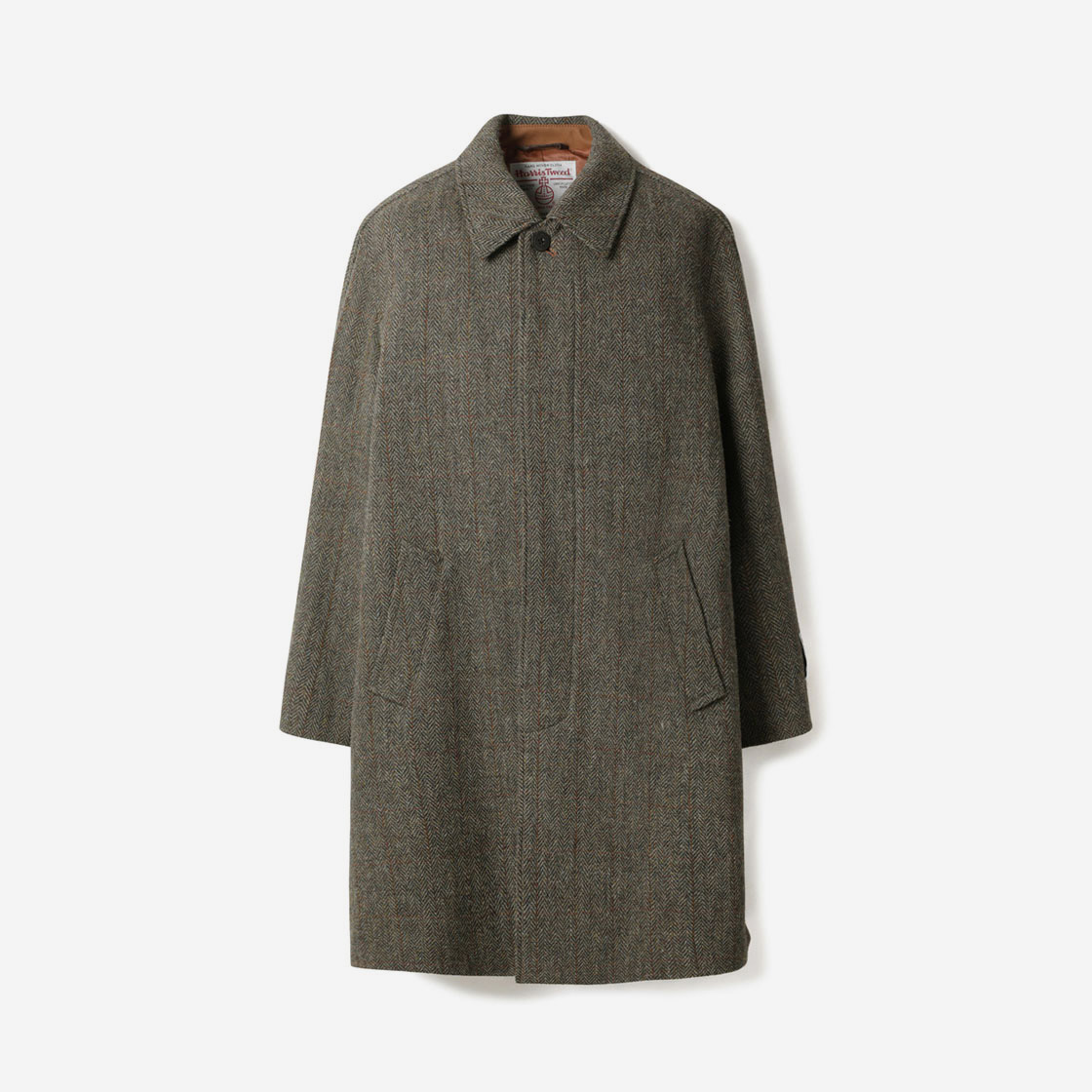 시리즈 해리스트위드 울스터 칼라 롱 코트 올리브