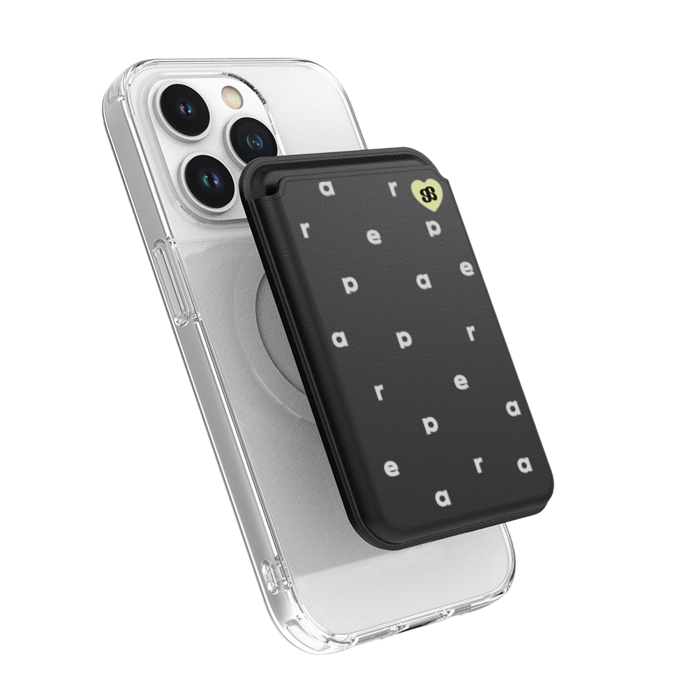 어프어프 로고 패턴-BLACK(맥세이프-레더 카드지갑)