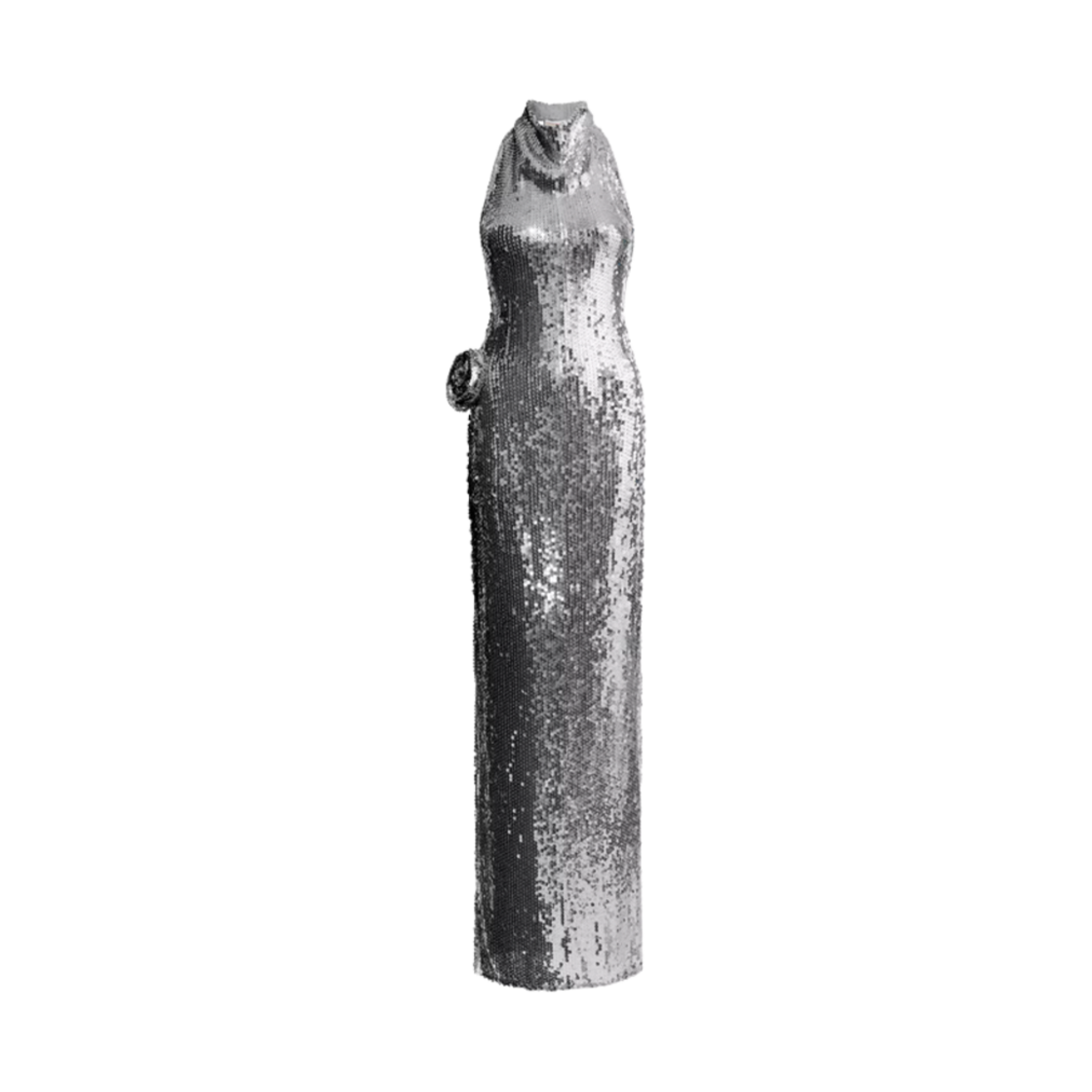 (W) 에이치앤엠 x 막다 부트림 시퀸 로즈 아플리케 맥시 드레스 실버