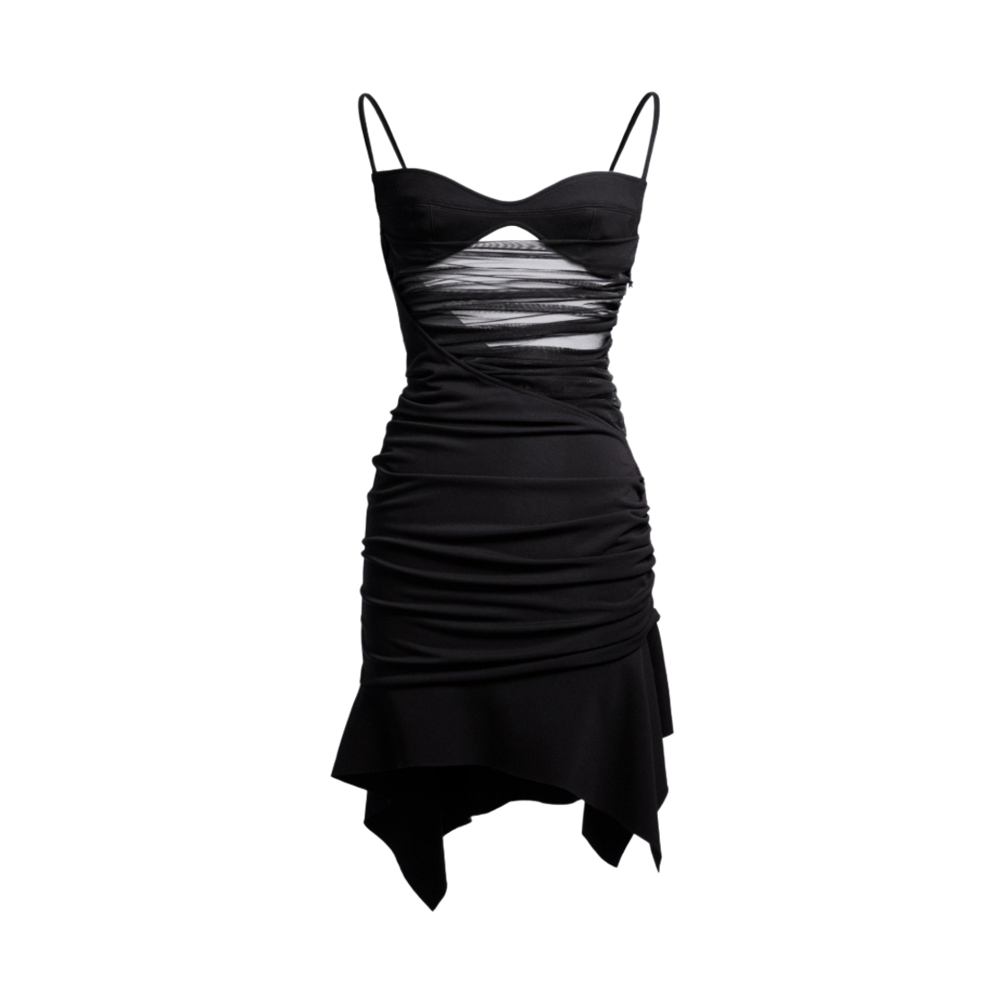 (W) 에이치앤엠 x 뮈글러 메쉬 패널 미니 드레스 블랙