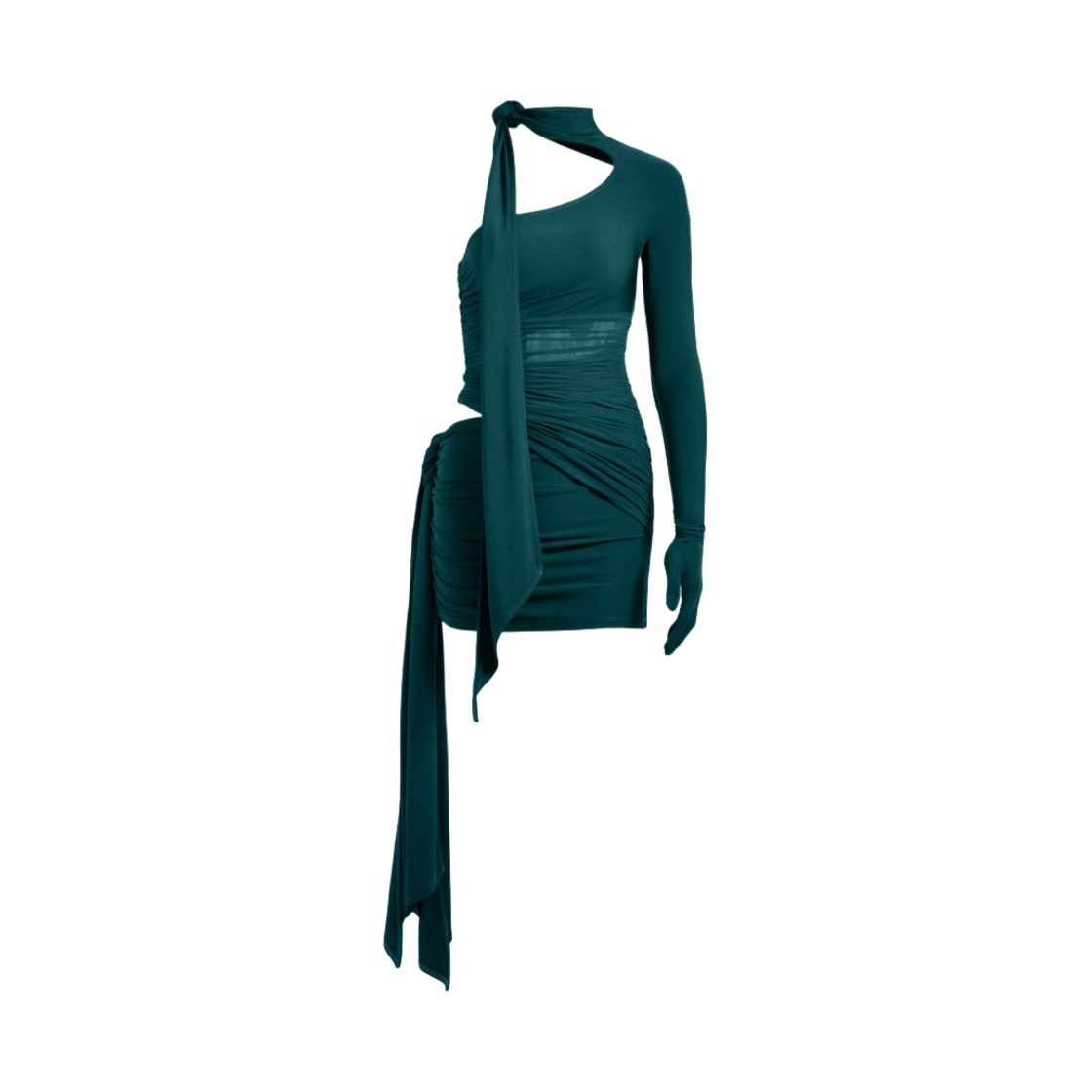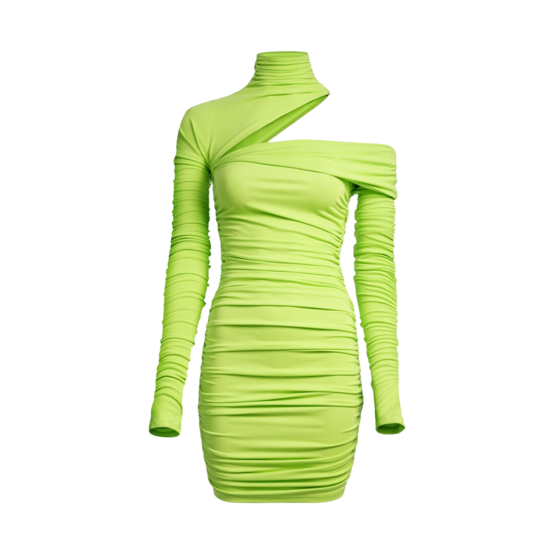 (W) 에이치앤엠 x 뮈글러 개더드 원숄더 미니 드레스 애시드 그린