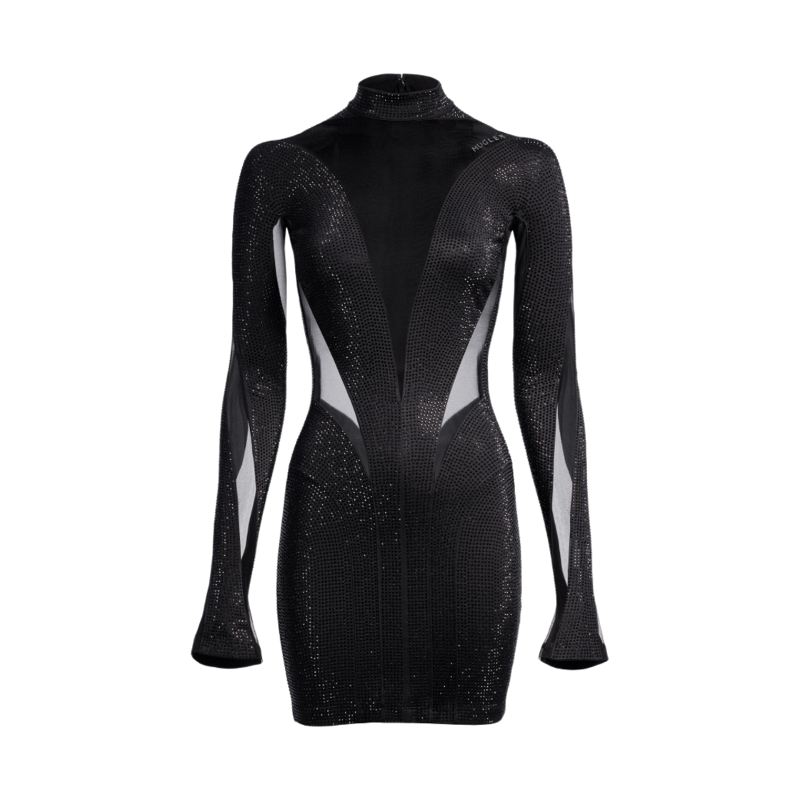 (W) 에이치앤엠 x 뮈글러 라인스톤 스파이럴 패널 미니 드레스 블랙