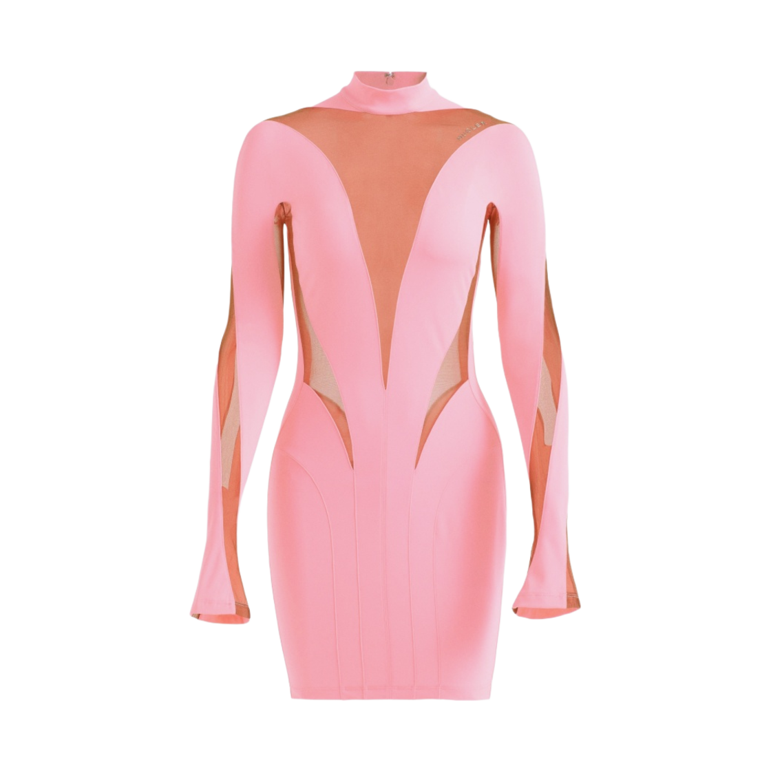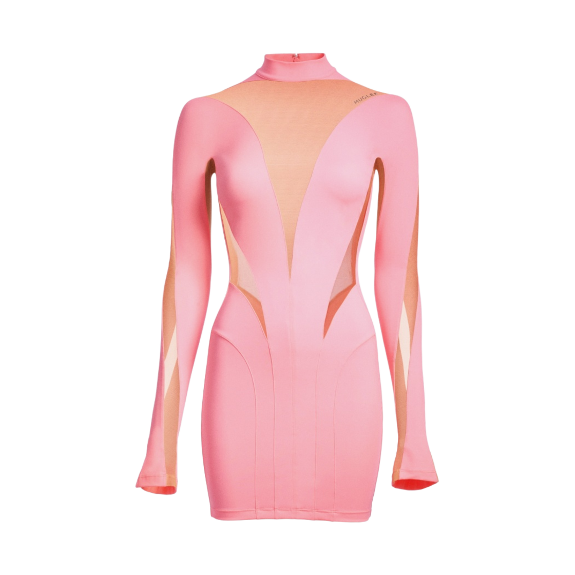 (W) 에이치앤엠 x 뮈글러 메쉬 패널 미니 드레스 핑크