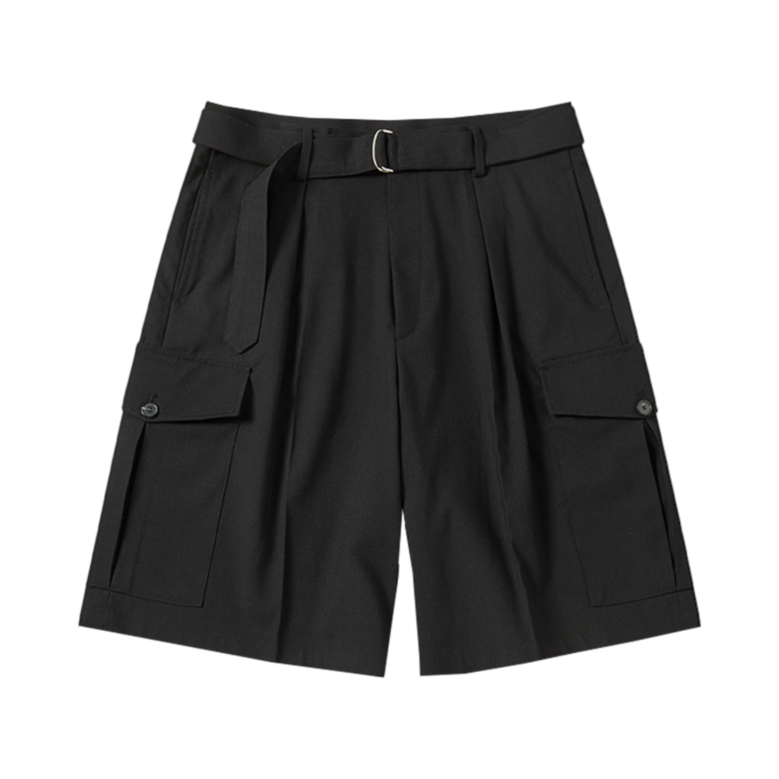 엔 아카이브 벨티드 디테일 워시드 울 카고 하프 팬츠 블랙
