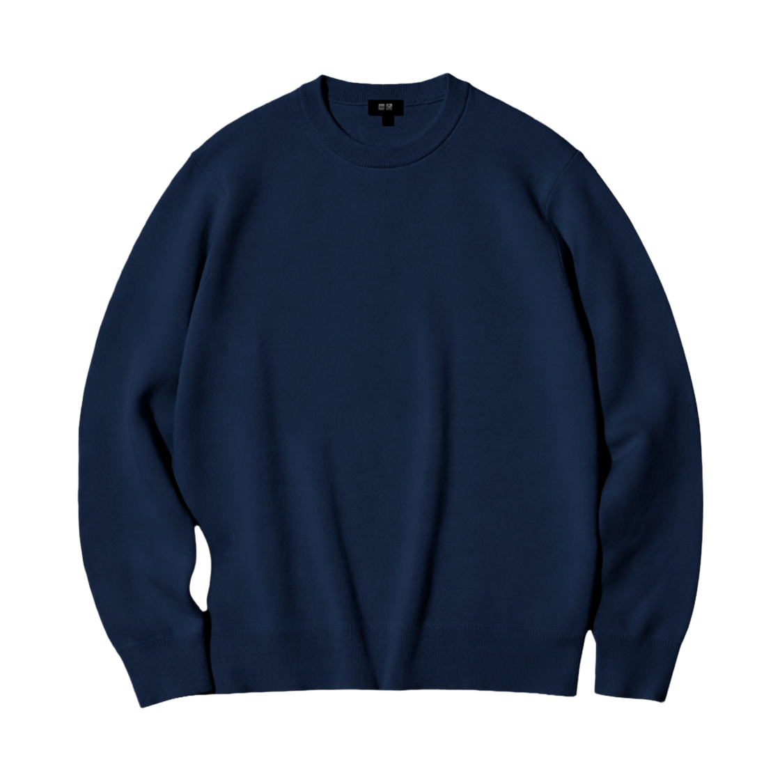 유니클로 워셔블 밀라노 립 크루넥 스웨터 네이비 - JP
