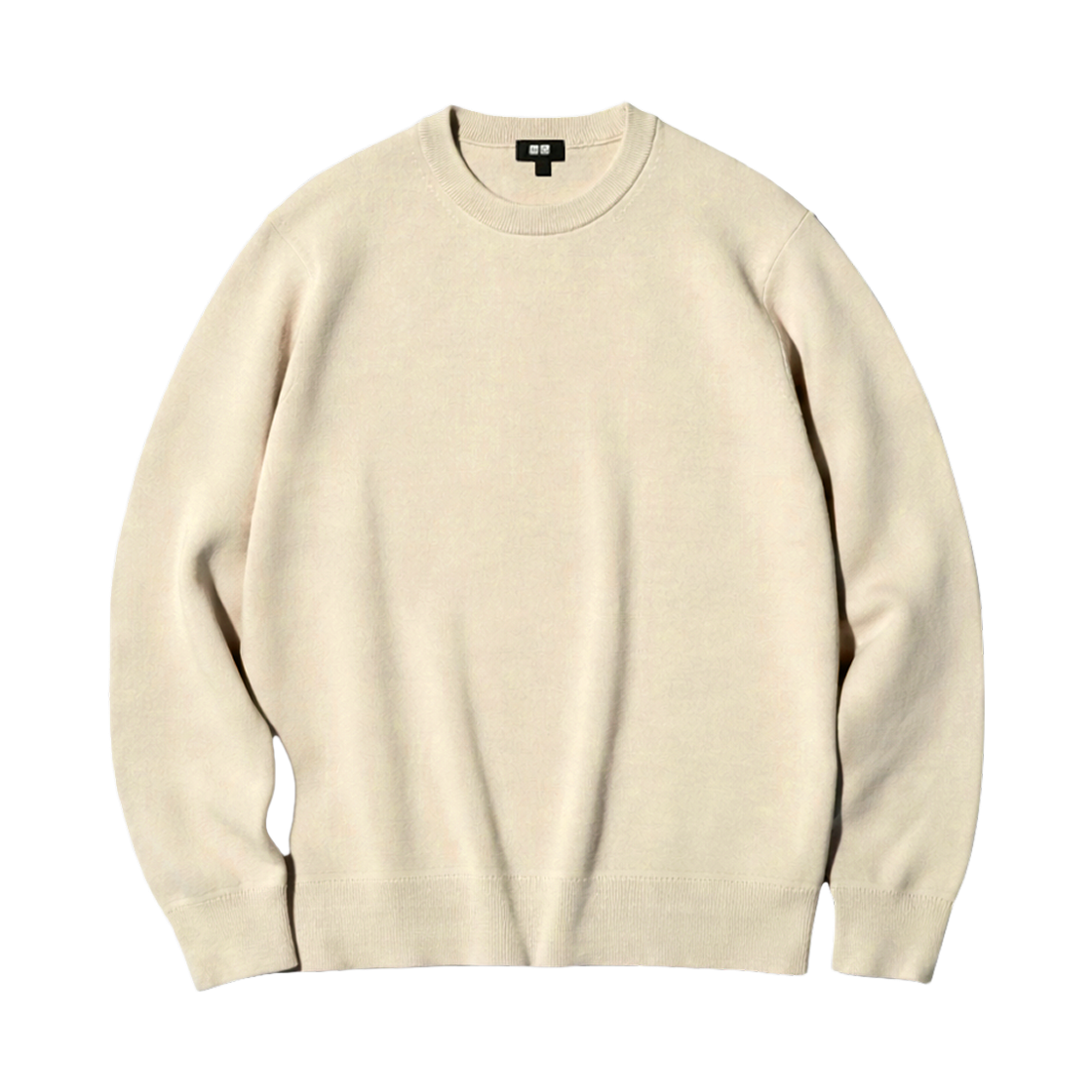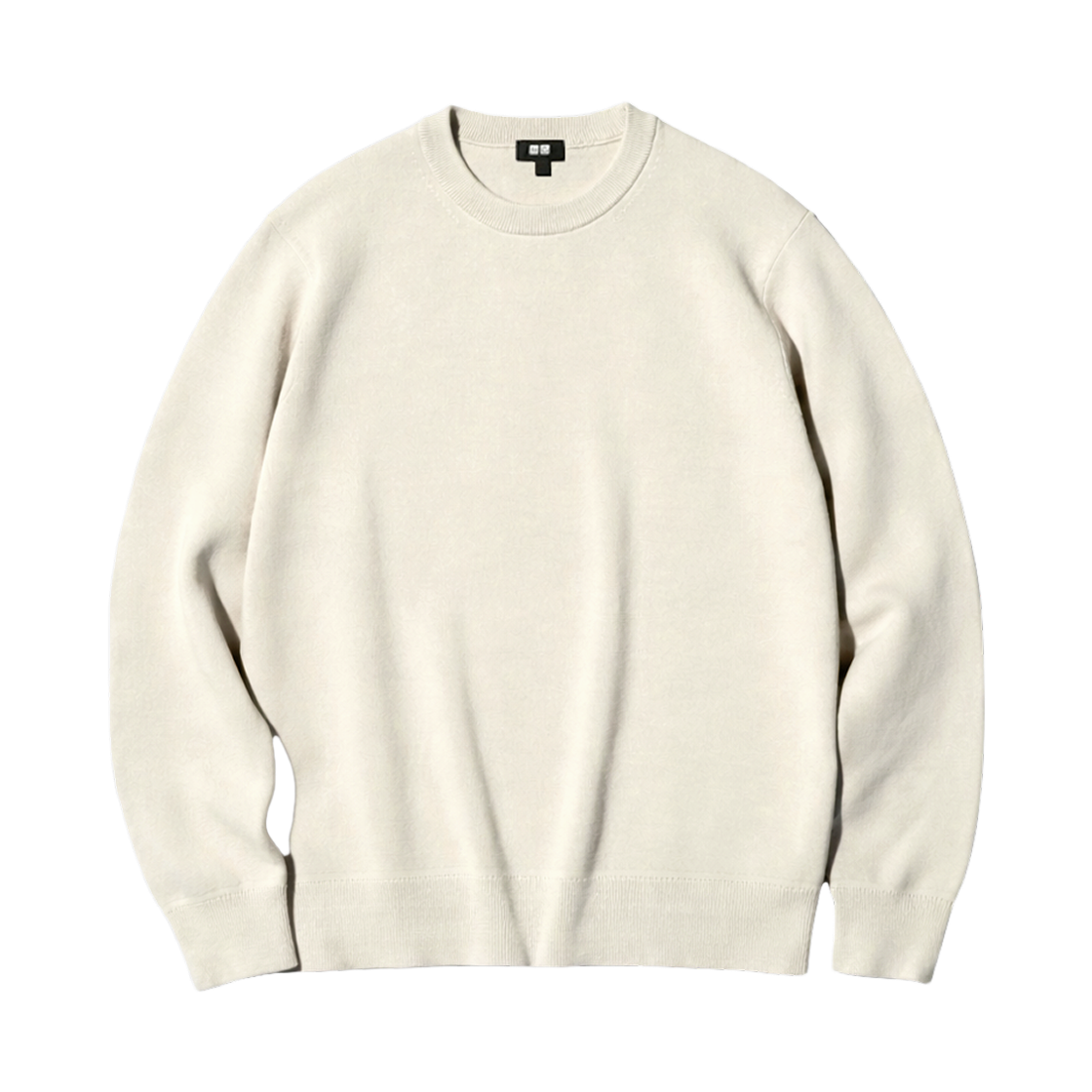 유니클로 워셔블 밀라노 립 크루넥 스웨터 오프 화이트 - JP