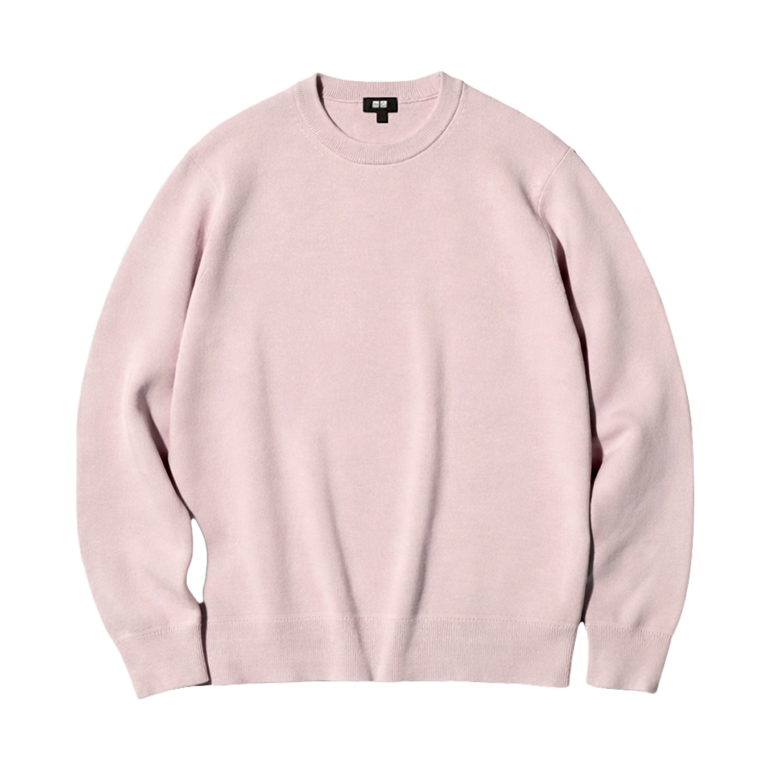 유니클로 워셔블 밀라노 립 크루넥 스웨터 핑크 - JP