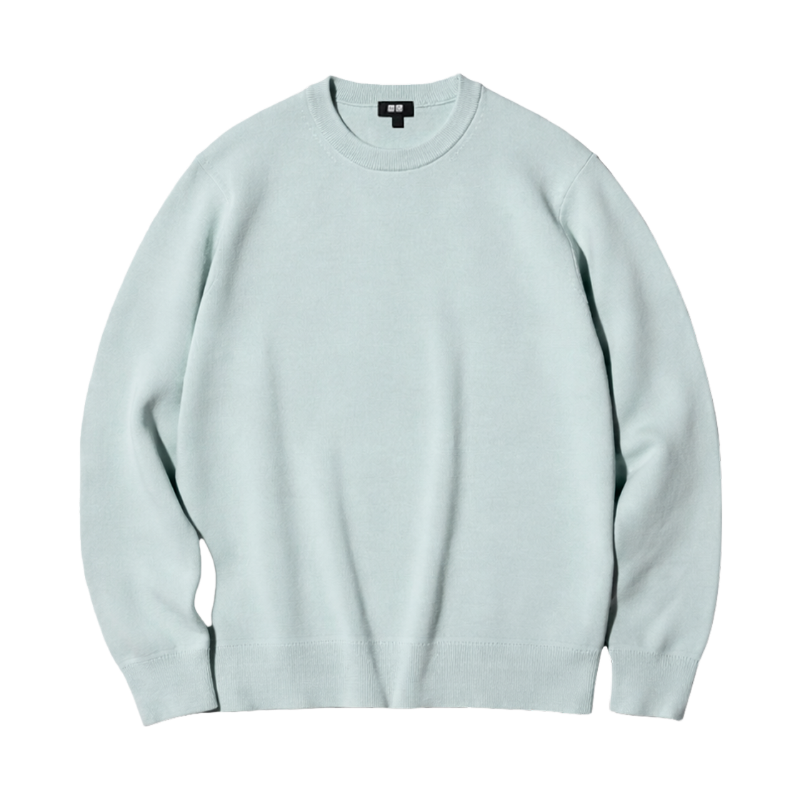 유니클로 워셔블 밀라노 립 크루넥 스웨터 라이트 블루 - JP