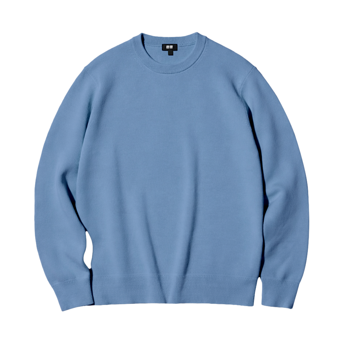 유니클로 워셔블 밀라노 립 크루넥 스웨터 블루 - JP