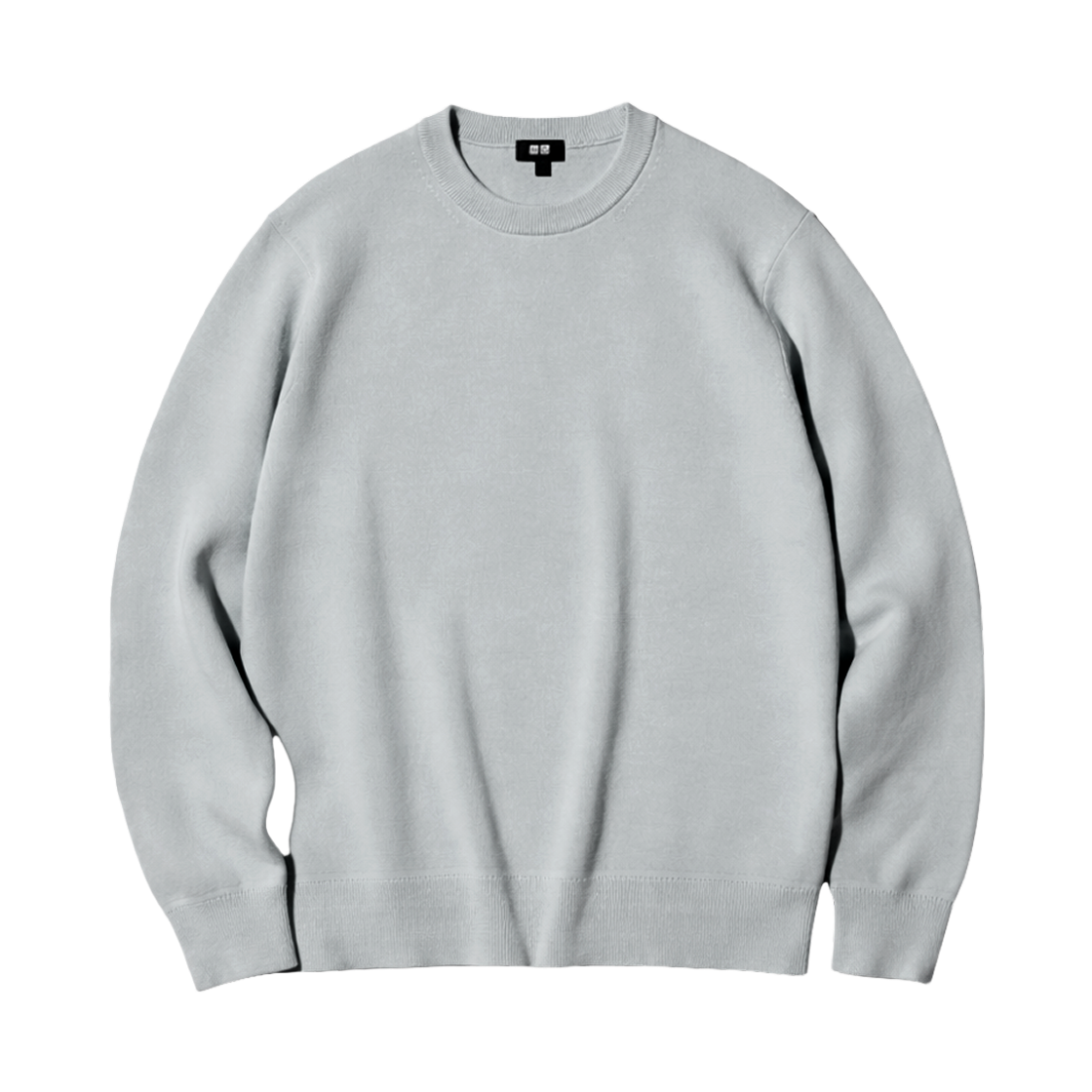 유니클로 워셔블 밀라노 립 크루넥 스웨터 그레이 - JP