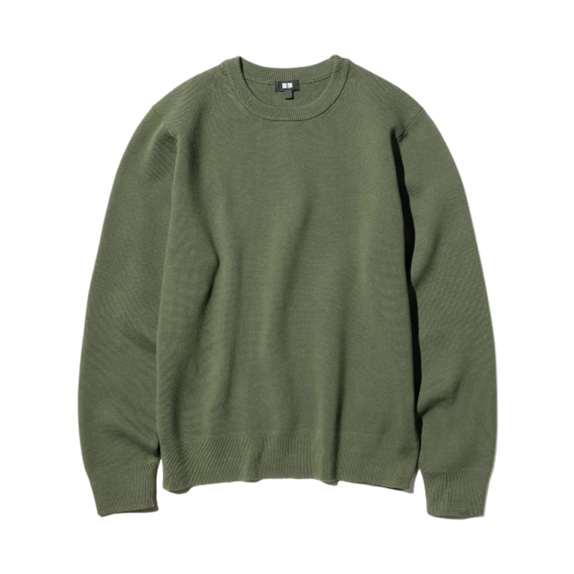 유니클로 워셔블 밀라노 립 크루넥 스웨터 올리브 - JP