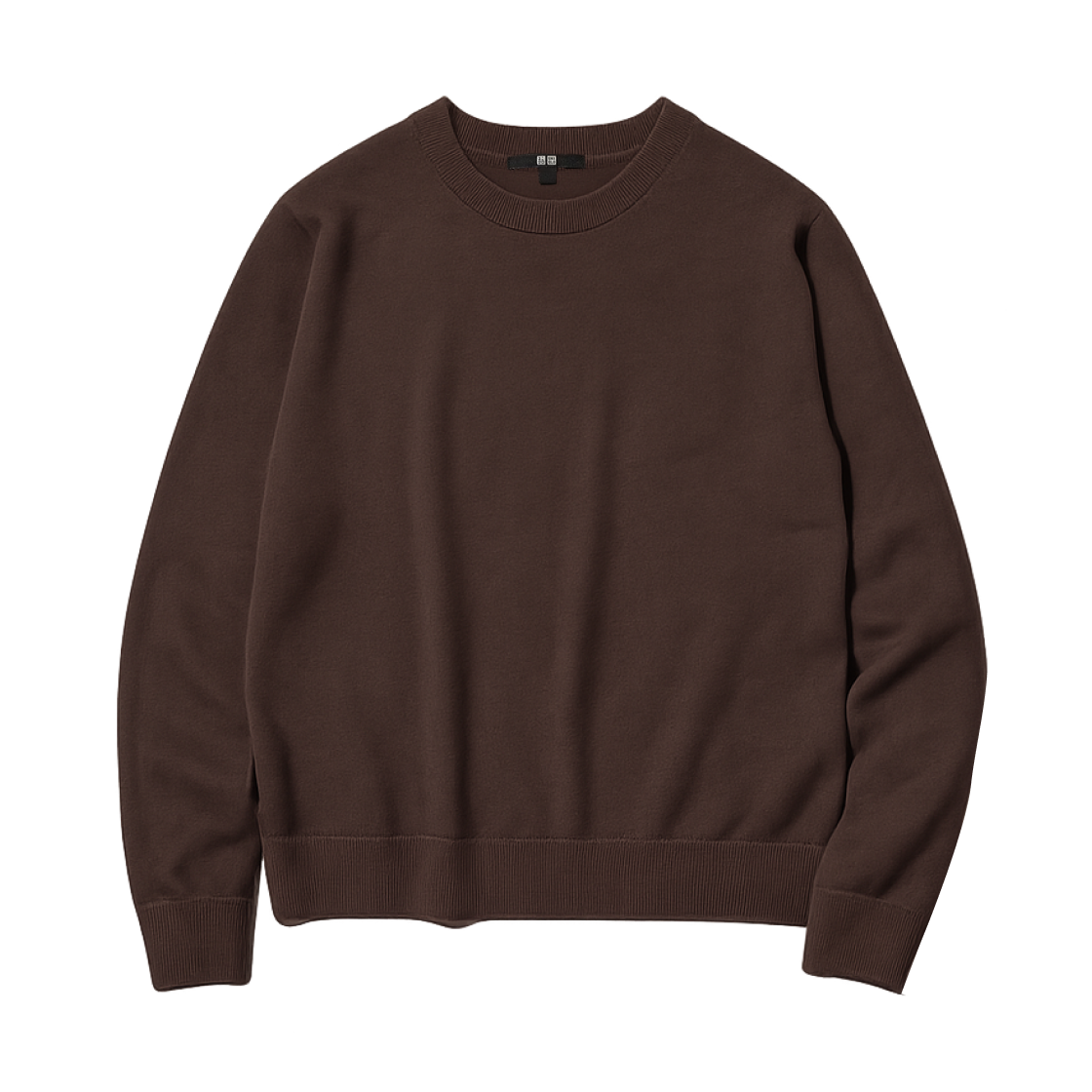 유니클로 소프트 니트 플리스 크루넥 티셔츠 브라운 - JP