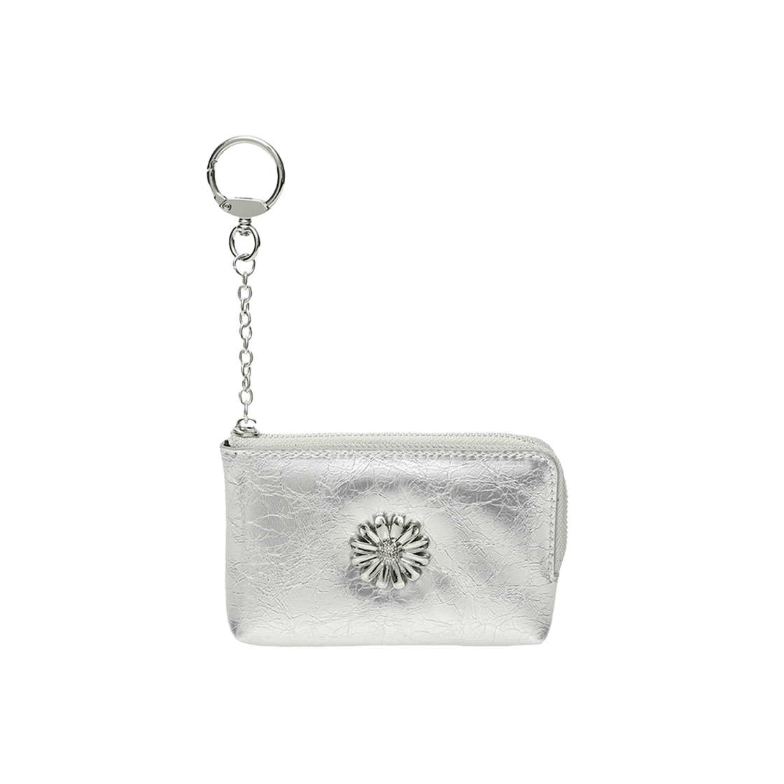 르마스크 데이지 키링 코인 지퍼 카드 월렛 파우치 실버