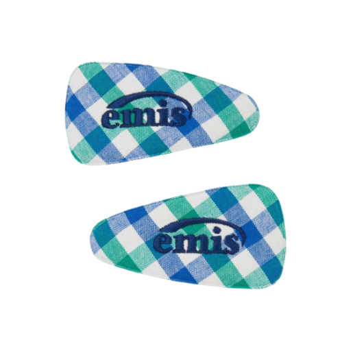 (W) 이미스 블록 체크 와이드 헤어핀 그린 블루