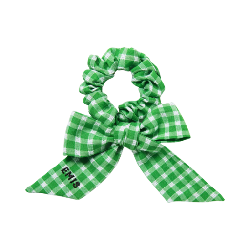 (W) 이미스 리본 체크 스크런치 그린