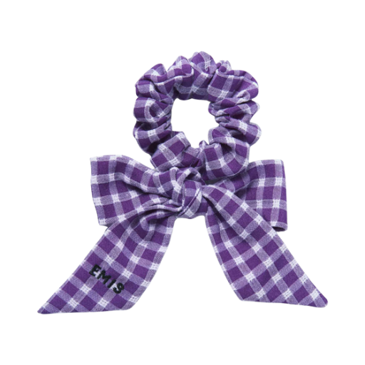 (W) 이미스 리본 체크 스크런치 퍼플