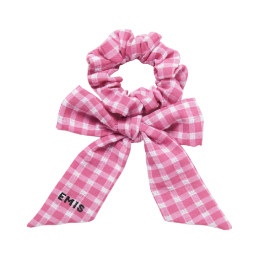 (W) 이미스 리본 체크 스크런치 핑크