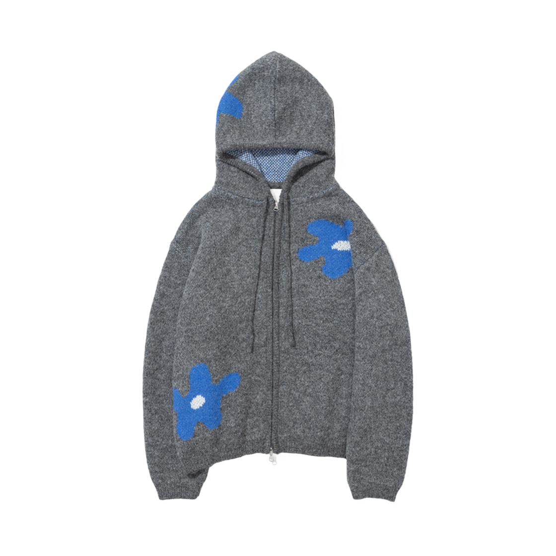 예일 헤어리 오너먼트 니트 후드 집업_그레이지
