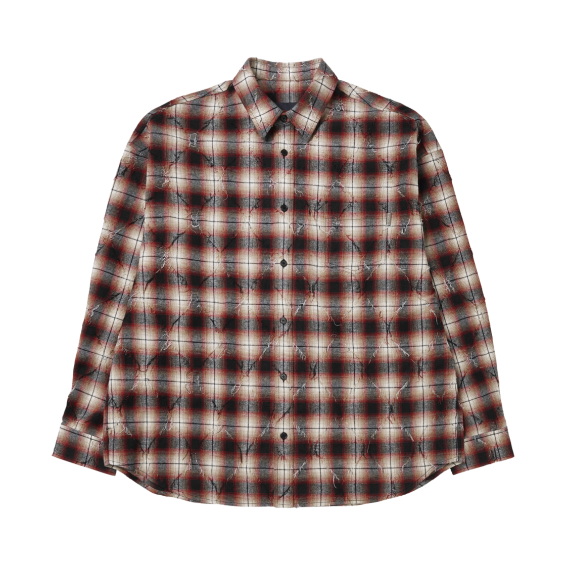 준지 아가일 데미지 체크 루즈핏 셔츠 레드 - 25SS