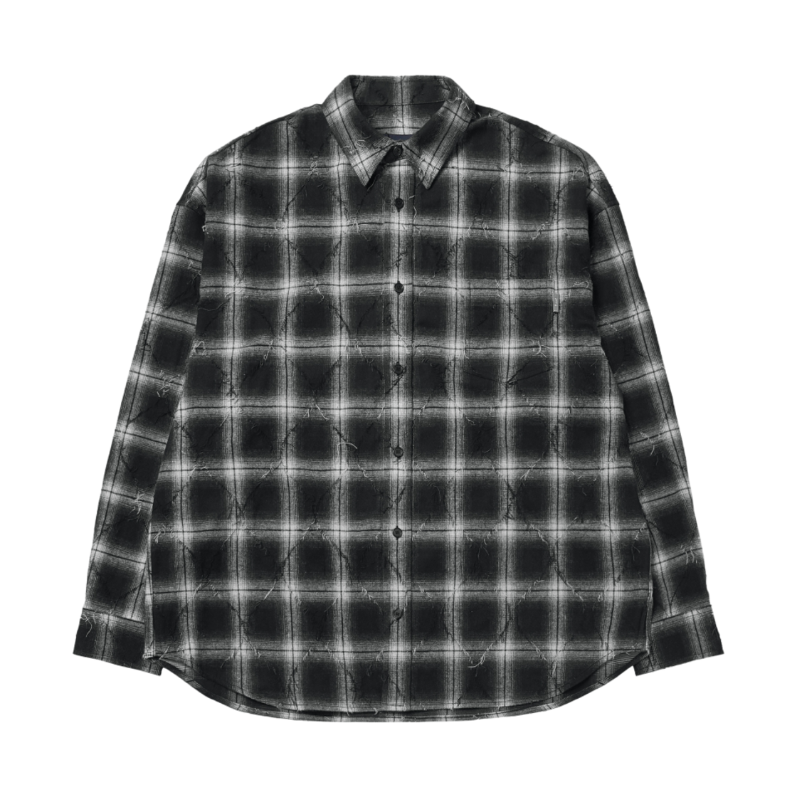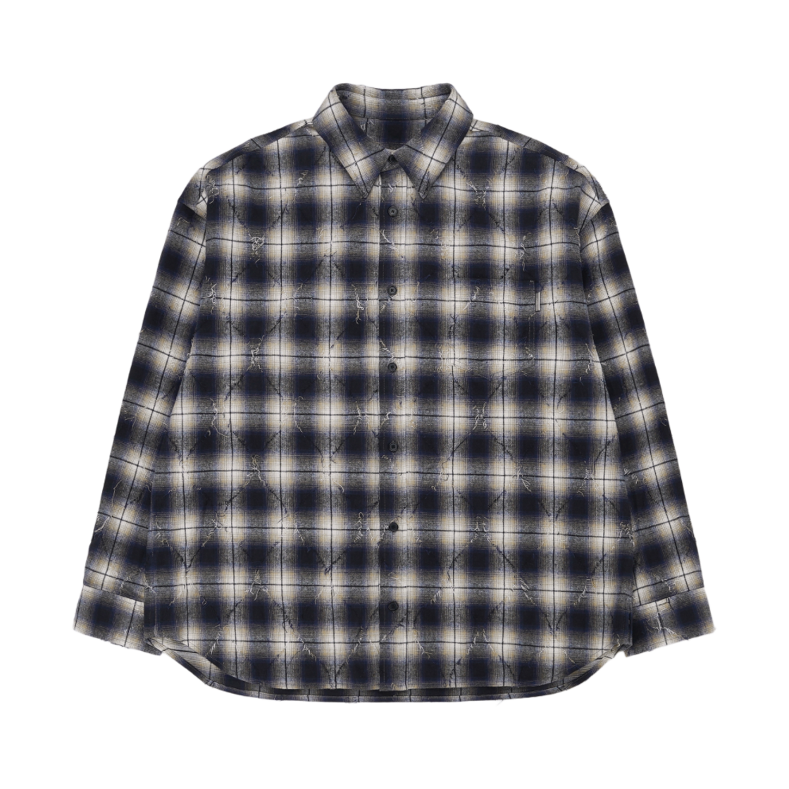 준지 루즈핏 아가일 데미지드 프린지 체크 셔츠 블루 - 24FW
