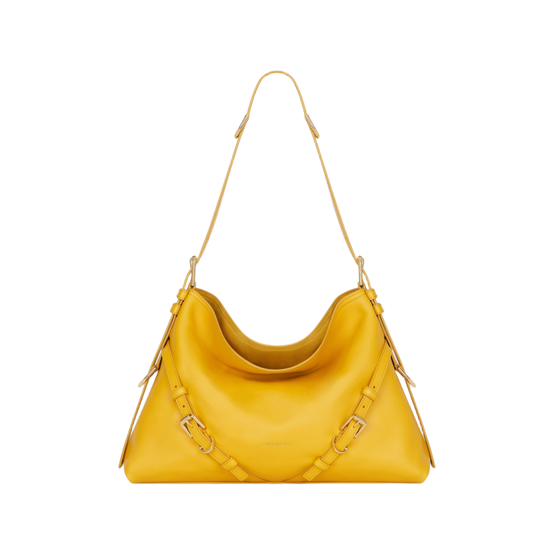 지방시 부아유 샤이니 레더 미디움 백 머스타드