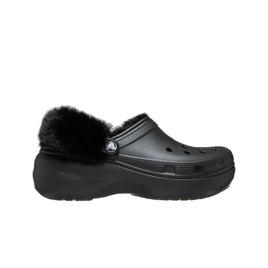 (W) 크록스 클래식 플랫폼 퍼지 라인드 클로그 블랙
