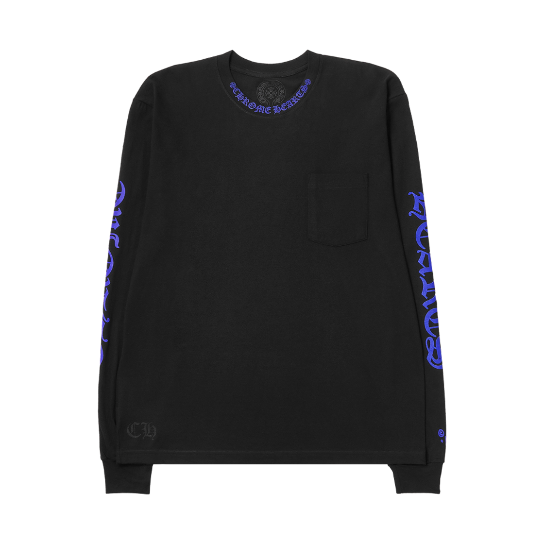 크롬하츠 핑크 넥 스크립트 로고 롱슬리브 포켓 크루 블랙