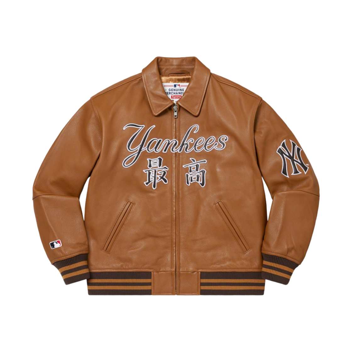 슈프림 x 뉴욕 양키스 간지 레더 바시티 자켓 브라운 - 22FW