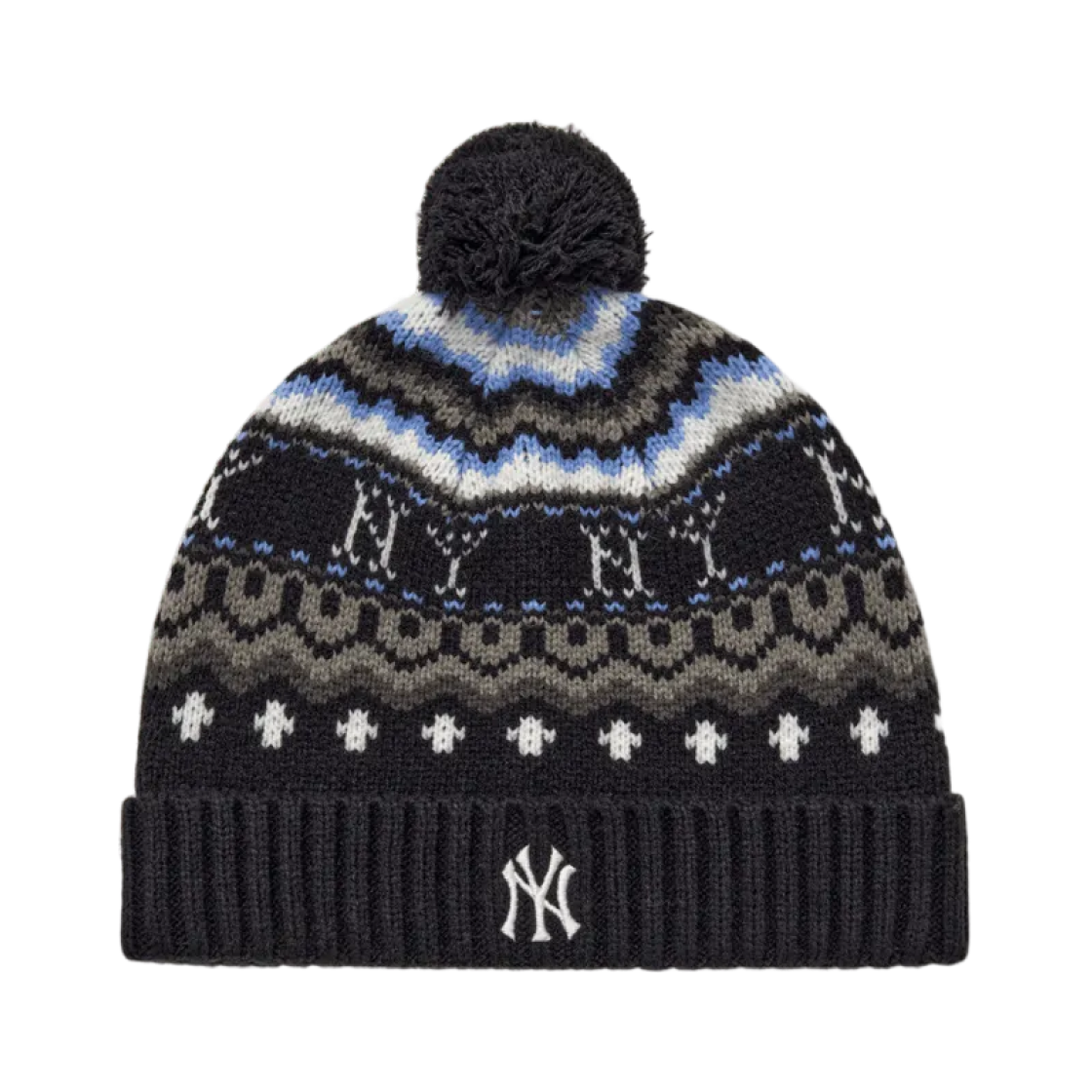 MLB 빈티지 패턴 폼폼 비니 뉴욕 양키스 블랙