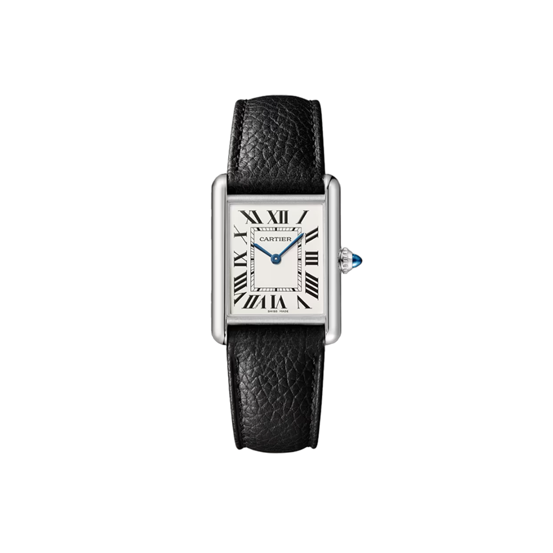 까르띠에 탱크 머스트 워치 스몰 쿼츠 스틸 카프스킨 블랙