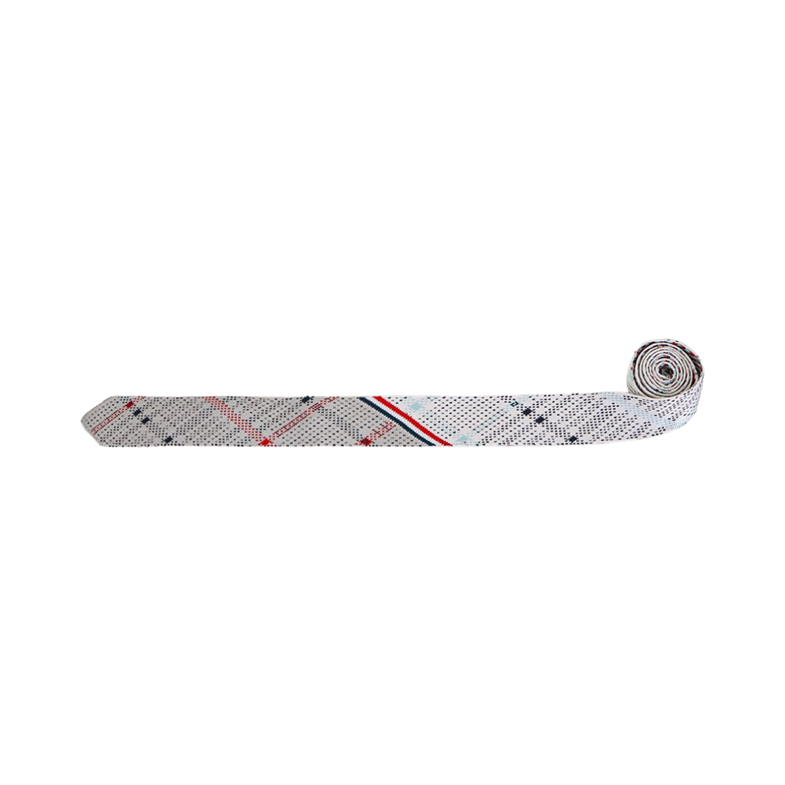 톰브라운 플레이드 체크 자카드 실크 니트 타이 그레이