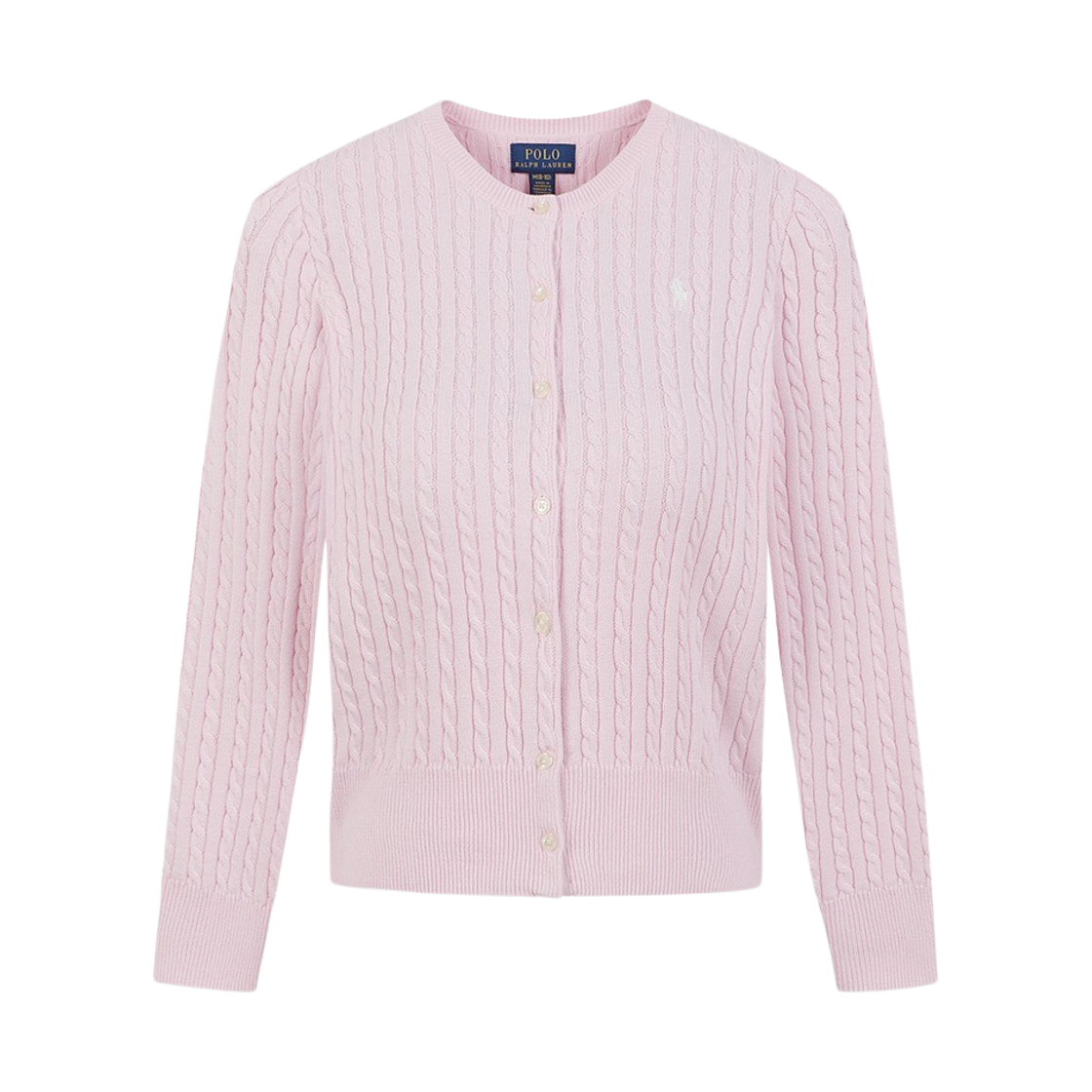 폴로 랄프 로렌 우먼 케이블 니트 코튼 크루넥 가디건 핑크 - 25SS