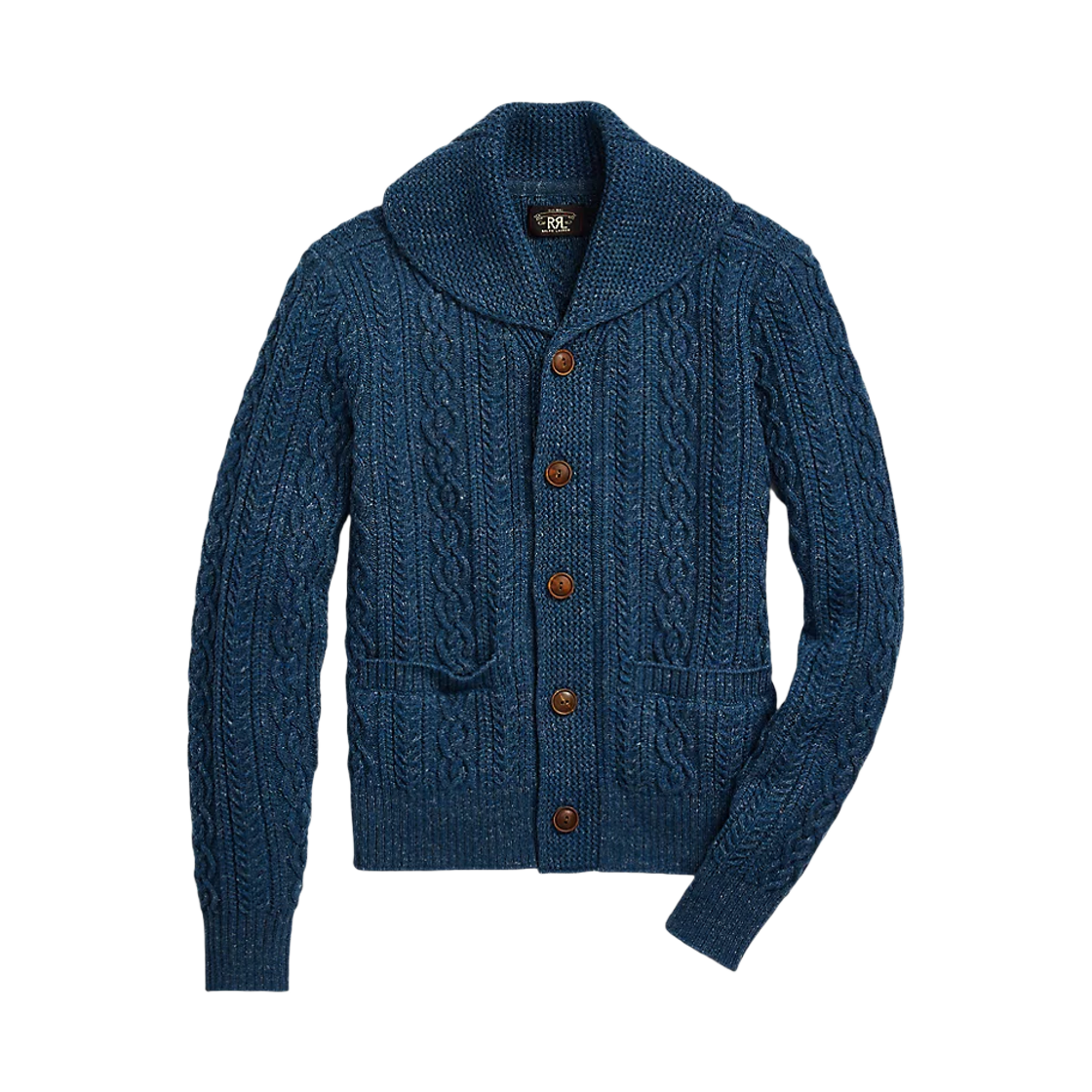 더블알엘 아란 니트 코튼 가디건 네이비 헤더