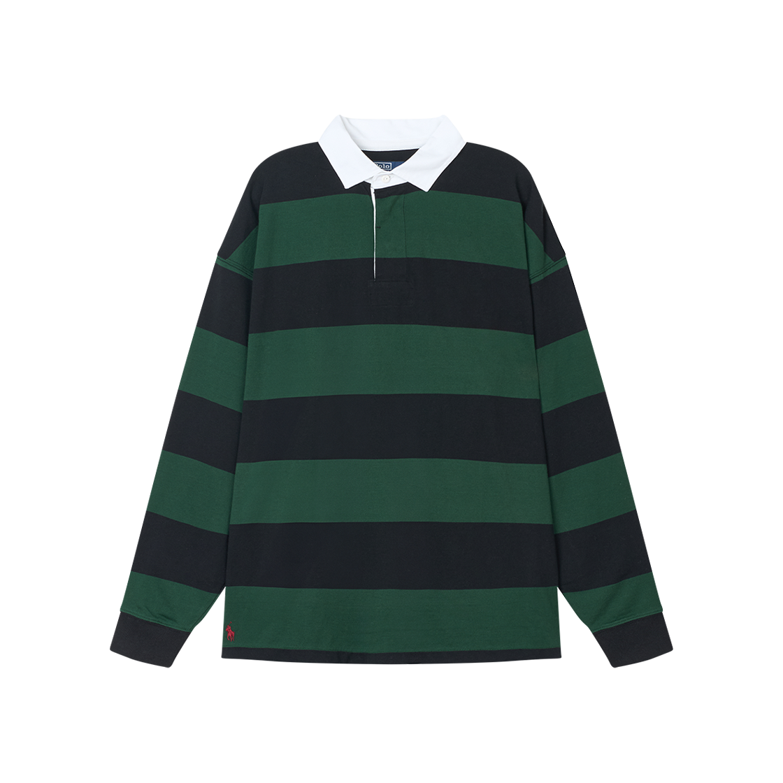 [10%적립] 폴로 랄프 로렌 빅핏 스트라이프 저지 럭비 셔츠 노스웨스트 파인 폴로 블랙 - 25FW