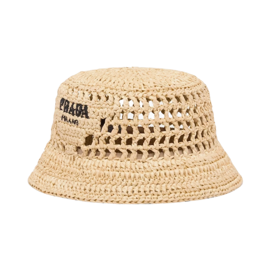 (W) 프라다 크로쉐 라피아 버킷햇 내츄럴
