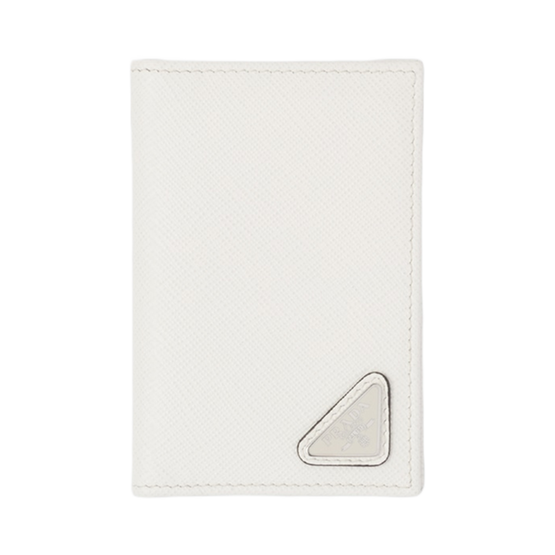 프라다 사피아노 레더 트라이앵글 로고 카드 지갑 화이트