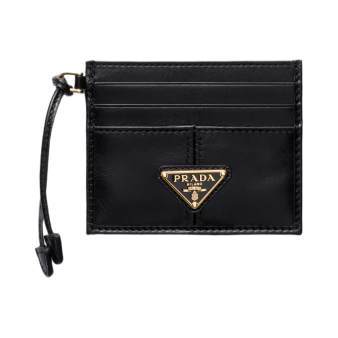 프라다 사피아노 레더 트라이앵글 로고 카드 지갑 블랙 골드