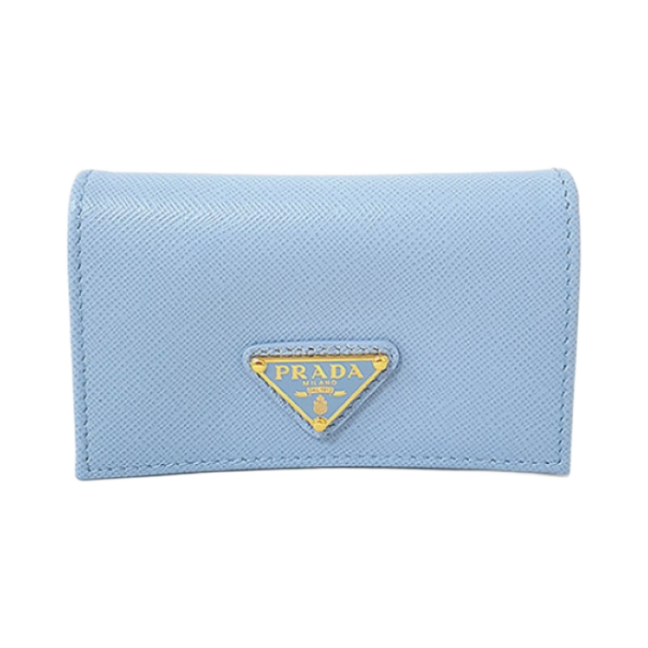프라다 사피아노 레더 트라이앵글 로고 카드 홀더 셀레스트