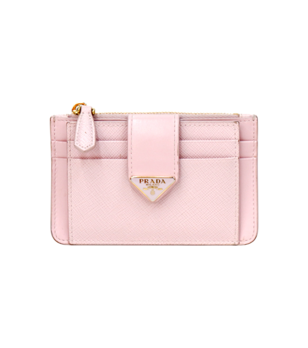 프라다 사피아노 레더 트라이앵글 로고 카드 홀더 파우더 핑크