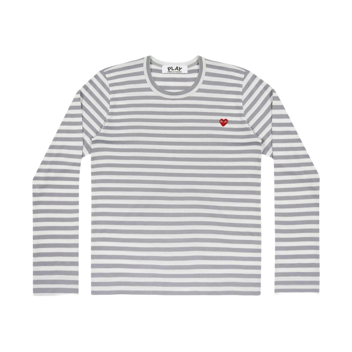 플레이 꼼데가르송 리틀 레드 하트 스트라이프 롱슬리브 티셔츠 그레이 화이트
