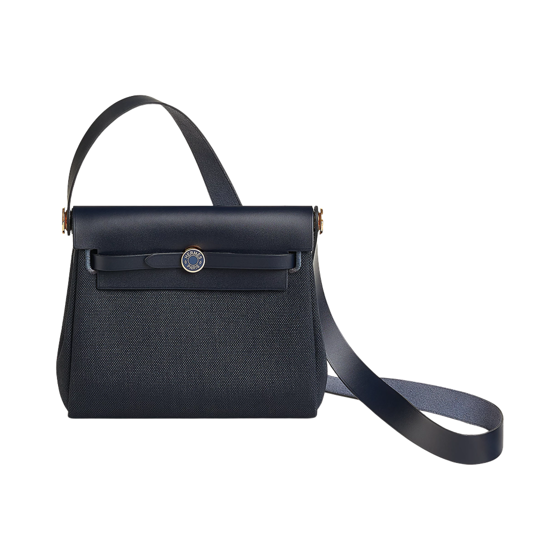 에르메스 에르백 집 20 백 밀리터리 캔버스 헌터 카우하이드 & 골드 하드웨어 블루 인디고